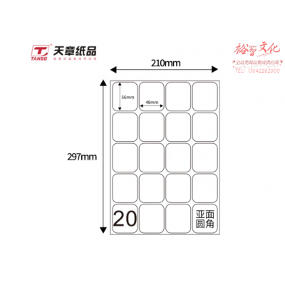 天章(TANGO)A4不干胶黄底哑面背胶纸 标签贴纸 圆角20枚/张(单枚48mm*56mm) 80张/盒装 SKU:yzwhyp312415