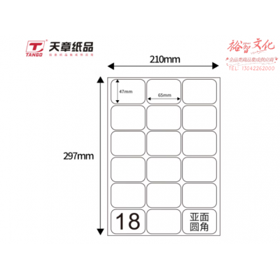 天章(TANGO)A4不干胶黄底哑面背胶纸 标签贴纸 圆角18枚/张(单枚65mm*47mm) 80张/盒装 SKU:yzwhyp312416