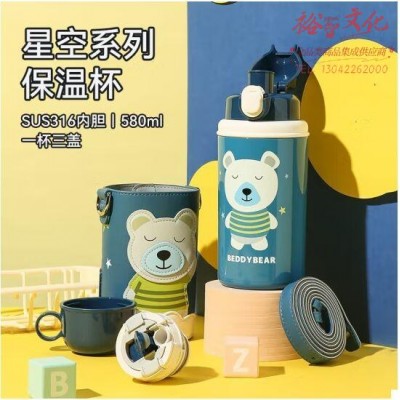 杯具熊(BEDDYBEAR) 儿童保温杯大容量男女宝宝316不锈钢吸管水杯一杯三盖直饮便携 星空小熊 SKU:yzwhyp312422