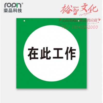 荣品 PVC电力安全标识安全警示标识贴验厂安检温馨提示标警示牌订做定制带孔 在此工作 80×80mm SKU:yzwhyp312565