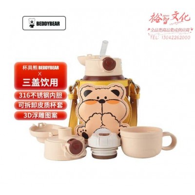 杯具熊(BEDDYBEAR)儿童保温杯四盖三用316不锈钢大容量宝宝吸管杯壶530ML在路上 SKU:yzwhyp312580