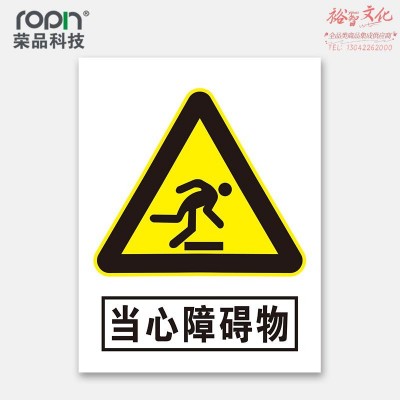 荣品 PVC当心安全国标警示标识牌验厂安检检查警示牌温馨提示标贴自带背胶订做定制 当心障碍物 220×300mm SKU:yzwhyp312589