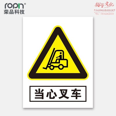 荣品 PVC当心安全国标警示标识牌验厂安检检查警示牌温馨提示标贴自带背胶订做定制 当心叉车 220×300mm p SKU:yzwhyp312591