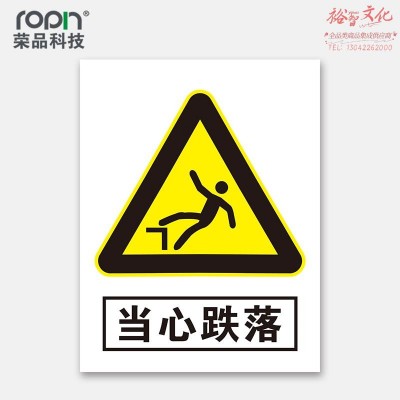 荣品 PVC当心安全国标警示标识牌验厂安检检查警示牌温馨提示标贴自带背胶订做定制 当心落物 220×300mm SKU:yzwhyp312596