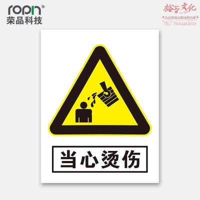 荣品 PVC当心安全国标警示标识牌验厂安检检查警示牌警温馨提示标贴自带背胶订做 当心烫伤 220×300mm SKU:yzwhyp312601