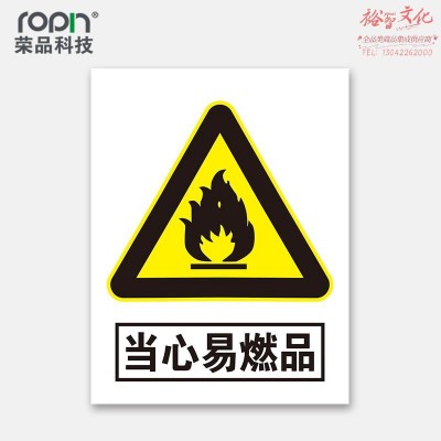 荣品 PVC当心安全国标警示标识牌验厂安检检查警示牌温馨提示标贴自带背胶订做定制 当心易燃品 220×300mm SKU:yzwhyp312602