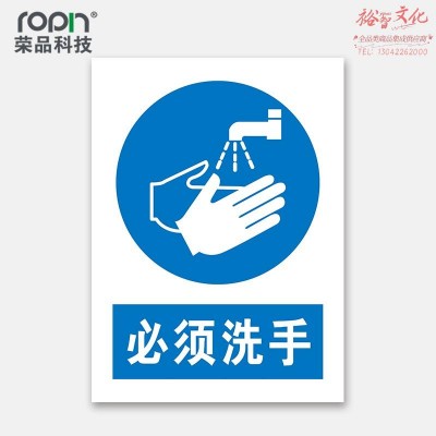 荣品 PVC国标安全警示标识牌验厂安检检查警示牌温馨提示定制订做自带背胶 必须洗手 220×300mm SKU:yzwhyp312609