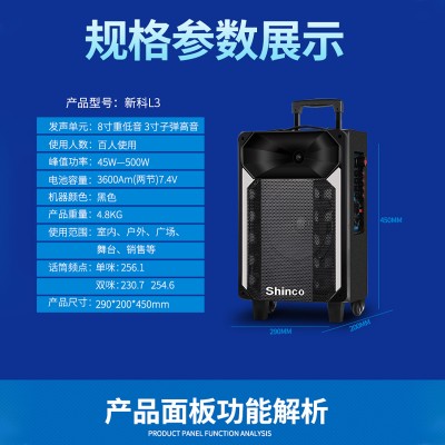 新科(Shinco)L3不带灯户外广场舞音箱便携式拉杆音箱大功率K歌重低音移动户外蓝牙拉杆音箱双咪 SKU:yzwhyp202674