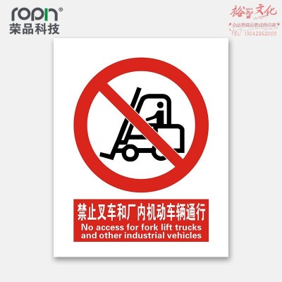 荣品 国标安全标识牌验厂安检检查警示牌警告提示牌告知牌温馨提示 禁止叉车和厂内机动车辆通行 220×300mm SKU:yzwhyp312632