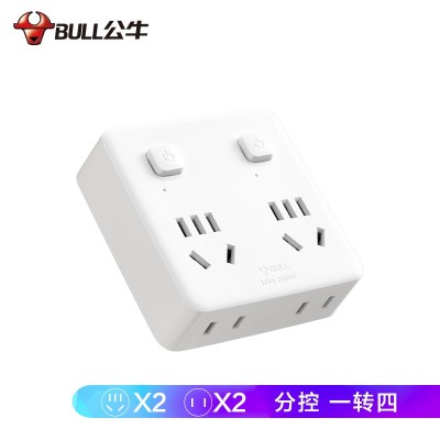 公牛(BULL)86型转换插头/插座/转换插座/电源转换器 一转四转换插头 适用于卧室、厨房 4位分控 GN-93223 SKU:yzwhyp202713