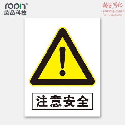 荣品 PVC当心安全国标警示标识牌验厂安检检查警示牌温馨提示标贴自带背胶订做定制 注意安全 300×390mm SKU:yzwhyp312649