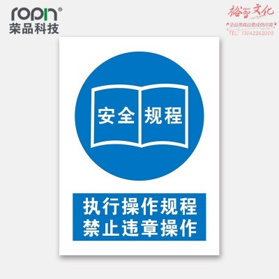 荣品 PVC国标安全警示标识牌验厂安检检查温馨提示定制订做自带背胶 执行操作规程禁止违章操作 300×390mm SKU:yzwhyp312656
