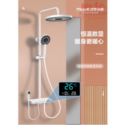 四季沐歌(MICOE) 智能LED数显花洒套装 空气增压易洁花洒喷头白色恒温花洒 SKU:yzwhyp602013