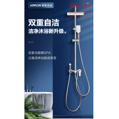 箭牌(ARROW)淋浴花洒套装 自洁淋浴喷头升级下出水 洗澡沐浴自洁手持顶喷 空气能增压四功能花洒AE34125CP SKU:yzwhyp602016