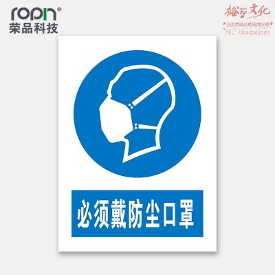 荣品 PVC国标安全警示标识牌验厂安检检查警示牌警告提示牌温馨提示标贴定制订做 必须戴防尘口罩 300×390mm SKU:yzwhyp312670