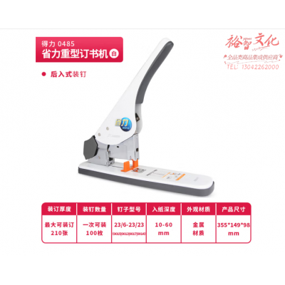 得力(deli)0485 210页带滑动标尺重型订书机 适配23/6~23/23订书钉 白色 SKU:yzwhyp602058