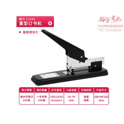 得力(deli)33349 100页重型订书机 适配23/6~23/13订书钉 黑色 SKU:yzwhyp602089