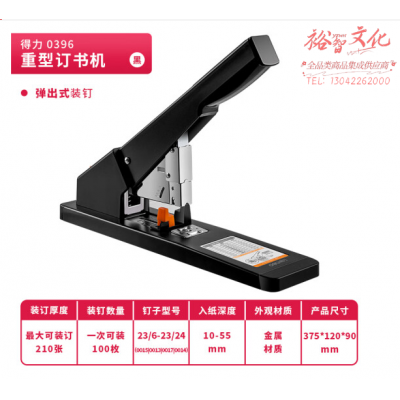得力(deli)0396 210页工业用重型订书机 适配23/6~23/23订书钉 黑色 SKU:yzwhyp602092