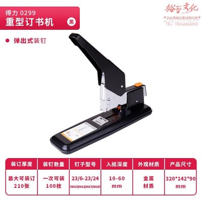 得力(deli)0299 210页简约重型订书机 适配23/6-23/24订书钉 黑色 SKU:yzwhyp602093