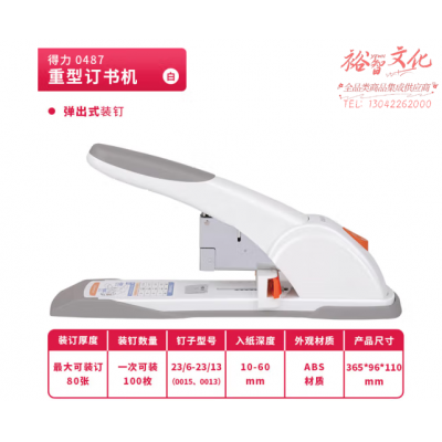 得力(deli)0487 80页带滑动标尺重型订书机 适配23/6~23/13订书钉 白色 SKU:yzwhyp602101