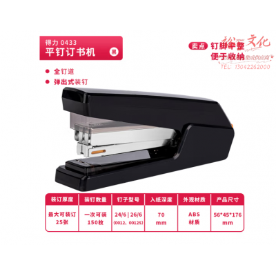得力(deli)0433 平钉省力型订书机 单指按压平钉包角 黑色 SKU:yzwhyp602113