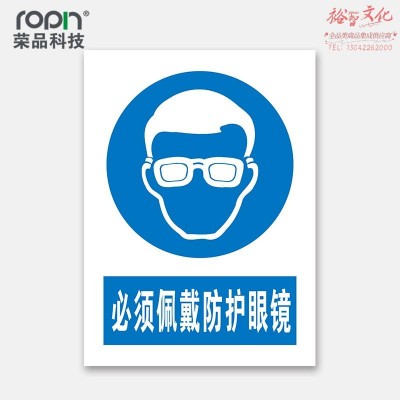 荣品 PVC国标安全警示标识牌验厂安检检查警示牌警告提示牌温馨提示标贴定制订做 必须佩戴防护眼镜400×550mm SKU:yzwhyp312837
