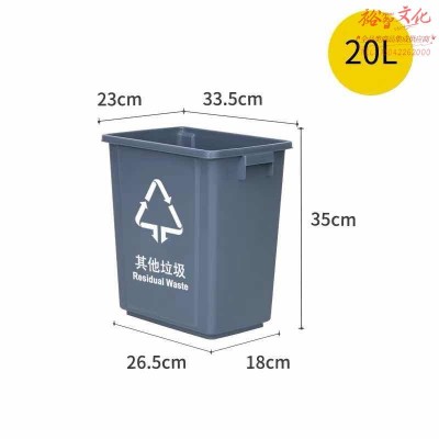 敏胤(MINYIN)MYL-7720B-6 20L无盖其它垃圾标识分类垃圾桶(颜色:灰黑色)单位:个 SKU:yzwhyp312863