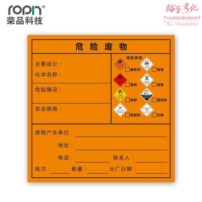 首页 > 建筑建材 > 其他防护用品 > 荣品 国标危险废物标签不锈钢医疗废物标识标志牌金属警告标示有害腐蚀性危险品 40×40cm 块 SKU:yzwhyp312802