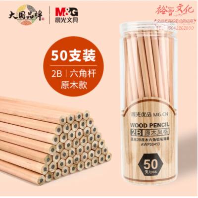 晨光(M&G)AWP30413 2B铅笔50支 原木六角木杆铅笔 SKU:yzwhyp106471