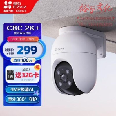 首页 > 广播、电视、电影设备 > 组合音像设备 > 会议、广播及音乐欣赏系统 > 萤石 C8C 400万摄像头+64G监控专用卡 无线WiFi 室外双云台360° 防水防尘监控 人形检测 全彩夜视 控 手机远程 人形检测 全彩夜视 SKU:yzwhyp602173