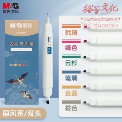 晨光(M&G)AHMT7303 6色双头荧光笔 国风色系双头扁圆杆 SKU:yzwhyp106513