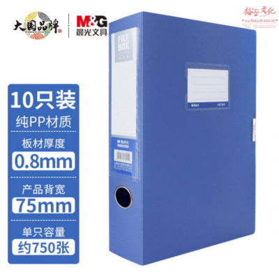 晨光(M&G)ADM929AB A4/75mm蓝色粘扣档案盒 办公文件盒 10个装 SKU:yzwhyp106570