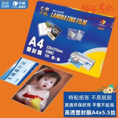 千帆(SAILS)塑封膜a4 5.5丝 塑封机过塑膜 过塑机封塑膜 过塑纸过胶纸护卡膜过胶膜A403 220x310mm 100张 SKU:yzwhyp106601