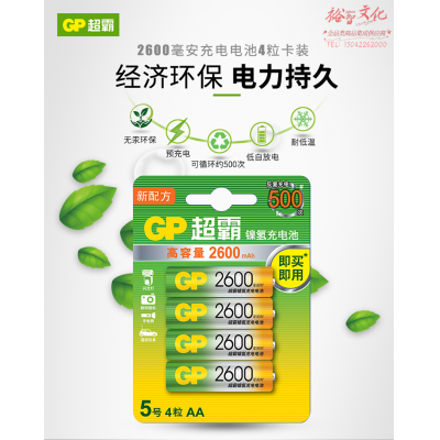 超霸(GP)5号充电电池2600毫安4粒装 镍氢电池 适用于游戏柄/遥控器/相机/玩具/体重秤/血压仪/吸奶器 SKU:yzwhyp313102