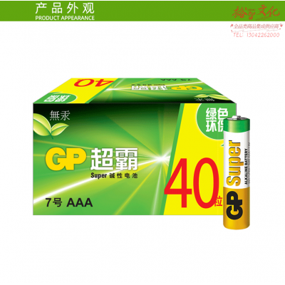 超霸(GP)7号碱性电池干电池40节装 照相机/鼠标/玩具/剃须刀/门铃/医疗仪器/电动工具AAALR03 SKU:yzwhyp313106