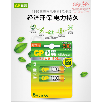 超霸(GP)镍氢5号1300mAh充电电池2粒装 适用于游戏柄/遥控器/相机/玩具/体重秤/血压仪/吸奶器等 五号AA SKU:yzwhyp313115