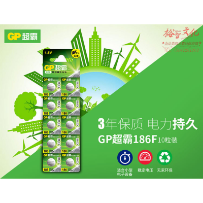 首页 > 电气设备 > 原电池和原电池组 > 超霸(GP)纽扣电池186/AG12/LR43/L1142/386/V12GA10粒装 电子手表遥控器电子秤汽车钥匙门铃 SKU:yzwhyp313122