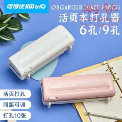 可得优(KW-triO) 六孔打孔机金属结构打孔器间距9孔可调附定位导尺配套活页本记事本笔记本子 粉色 SKU:yzwhyp106710