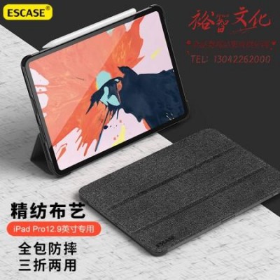 ESCASE iPad pro12.9保护套苹果2018款全包平板电脑防摔软壳儿童网课支架布壳ES18+布艺黑 SKU:yzwhyp313382