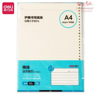 得力(deli)NA460-1 A4/60张/30孔横线活页本替芯 SKU:yzwhyp602469