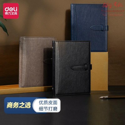 得力(deli)22800 25K/100张活页夹皮面本 会议记事本活页本 黑色 SKU:yzwhyp602489