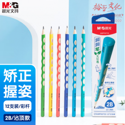 晨光(M&G)AWP30733 2B洞洞铅笔 彩杆三角木杆 12支/盒装 SKU:yzwhyp106872