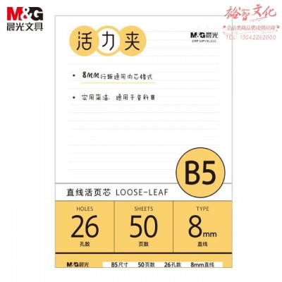 晨光(M&G)MPY9LS33 B5/26孔米色活页本替芯 极简系列8mm横线线圈纸 50页/包装 SKU:yzwhyp106884