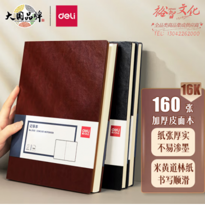首页 > 办公用品 > 文具 > 得力(deli)3185 16K/160张加厚商务皮面本 会议记事本 棕色 SKU:yzwhyp602503
