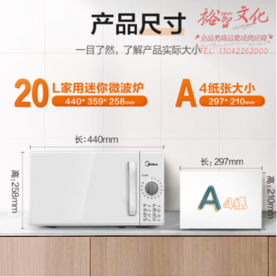 美的(Midea)快捷家用微波炉 家用小型迷你 360°转盘加热 旋钮操控 易洁内胆 时间调节20升(PM2000) SKU:yzwhyp313468
