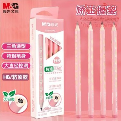晨光(M&G)AWP3070A0 HB洞洞铅笔 特粗杆三角木杆 粉色12支/盒装 SKU:yzwhyp106894