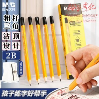 晨光(M&G)AWPQ4904 2B加粗三角木杆铅笔 黄色12支/盒装 SKU:yzwhyp106896