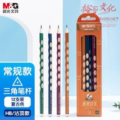 晨光(M&G)AWP30765 HB洞洞铅笔 复古色三角木杆复古色 12支/盒装 SKU:yzwhyp106908