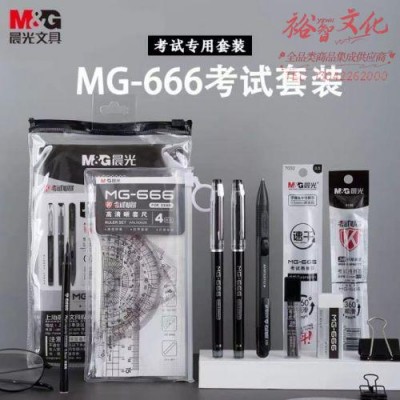 晨光(M&G)HAGP0945 文具学生考试套装(中性笔+替芯+涂卡笔+套尺量角器+橡皮) MG666系列红色 SKU:yzwhyp106931