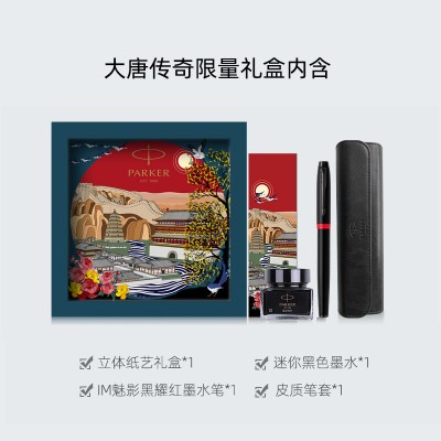 派克(PARKER)钢笔 签字笔 商务办公送礼 男女生日礼物学生练字文具书法 IM魅影黑耀红墨水笔+大唐盛世礼盒 SKU:yzwhyp203016
